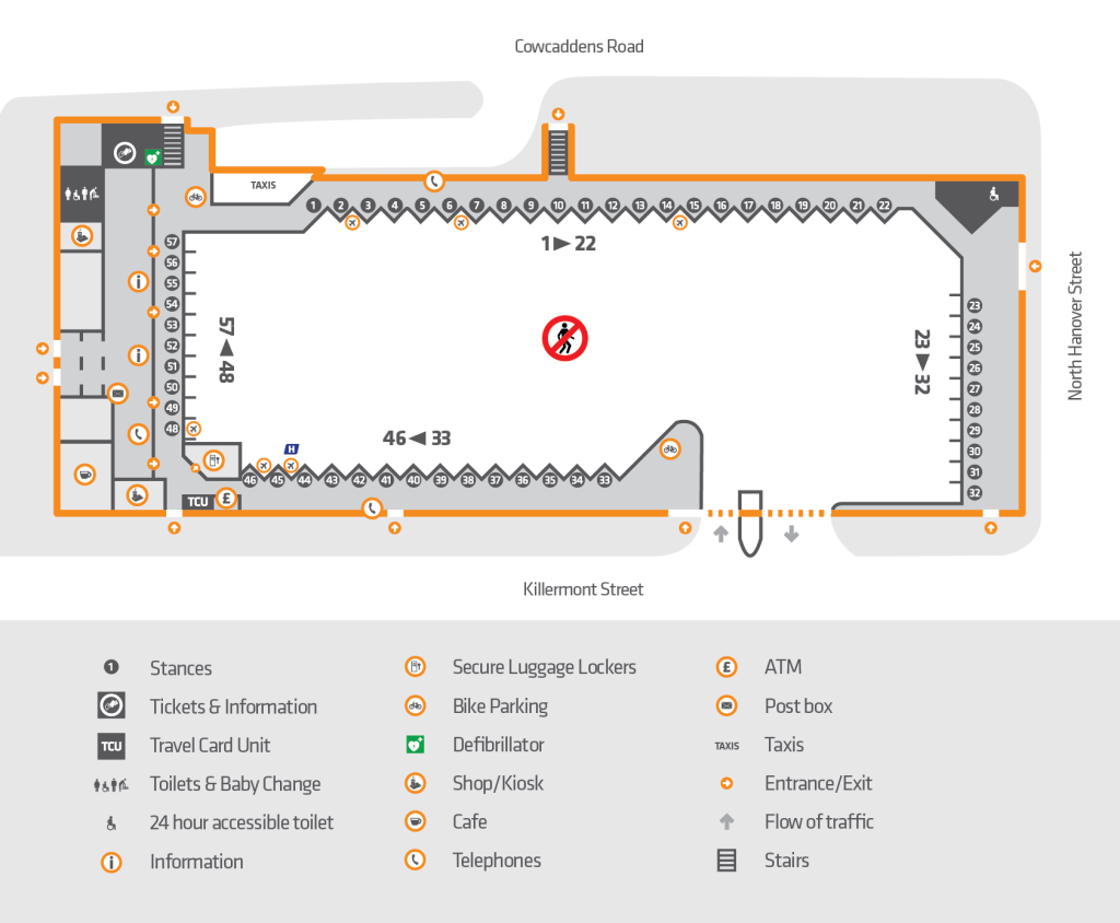 There are 100s of bus services coming in and out of the Bus Station, alongside Coach & Express services between Glasgow & many other Scottish cities like Dundee, Edinburgh & Fife! There also services to Glasgow & Edinburgh Airports, these operate frequently are usually Express services so they don’t stop everywhere!