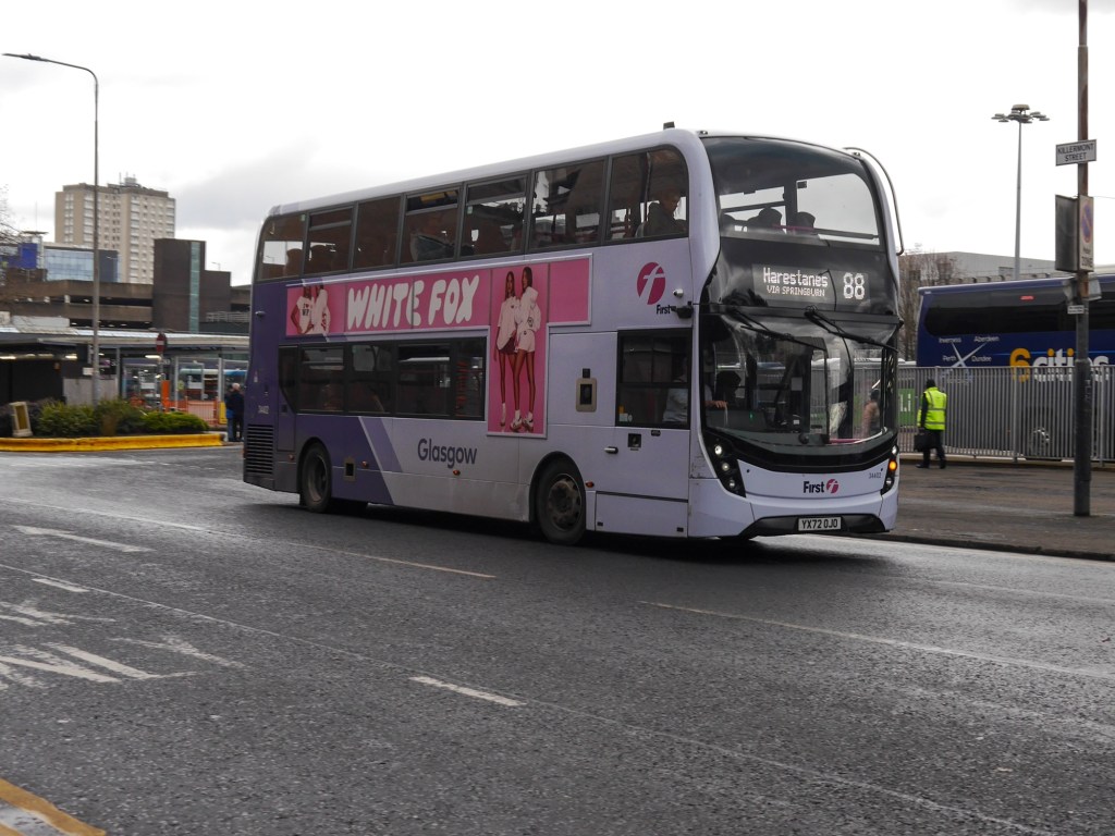 Staring with fist bus being the main operator in Glasgow along side McGills and Stagecoach, Arriva used to feature in Glasgow but McGill’s took over about ten years ago and are now one of the largest operators in Glasgow. This Alexander Dennis enviro 400 MMC is seen leaving Buchanan Street bus station on the 88 to Harestanes via Springburn, I’ve yet to sample this route but next time I visit I plan to do that!