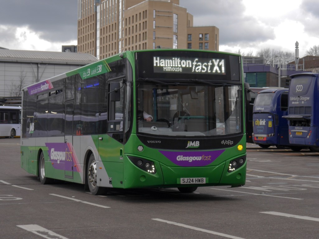 I rather like Buchanan Street because of its layout, you can get some decent shots of buses turning round heading to there stand to begin their journey. One new addition is the X1 operated by JMB Travel, this service I believe was axed by First group in 2020 due to the pandemic, however local residents of Hamilton complained and JMB now operate this service between Buchanan & Hamilton!