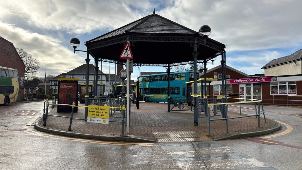 The bus station here is quite charming, featuring flowers, a bandstand, and a lovely old clock at its centre. It’s also opposite an old fire station, which I find quite appealing. The town centre of Heswall offers a variety of shops and cafes, and there’s a massive Tesco nearby as well.