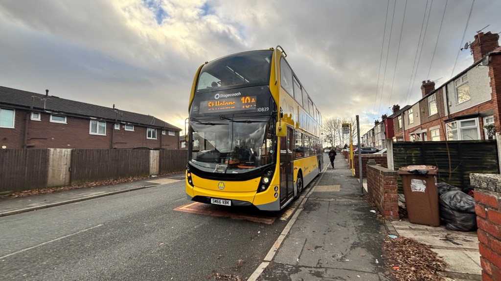 From Prescot, I hopped on the 10A, operated by Stagecoach/Arriva Merseyside, and was pleasantly surprised to find myself on SM66 VBK. This bus has recently been repainted into the new Metro colour scheme introduced by Steve Rotheram for the Liverpool City Region Combined Authority. The branding officially launches in 2026, with the first phases rolling out in St Helens and the Wirral.