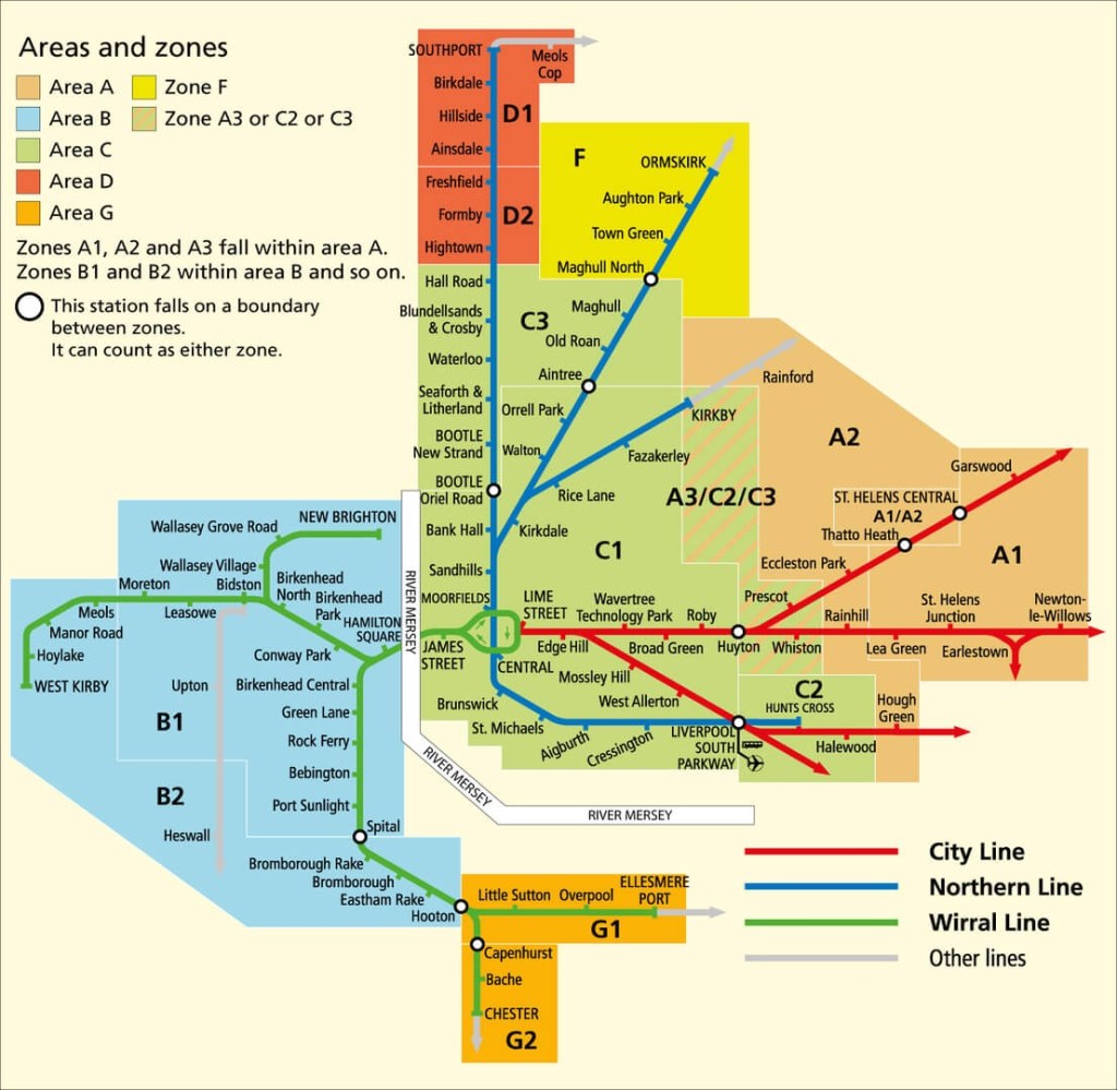 The map above shows the network by area. The Merseyside Day Saver (all zones) gives you full access to the entire Merseyrail Wirral and Northern lines, as well as parts of the Northern City Lines operated by Northern Trains. It’s one of my favourite day tickets because it really opens up the whole network and gives you so much flexibility to explore. I believe it also includes some coverage on the Mersey Ferries, although I’m not completely certain on that.